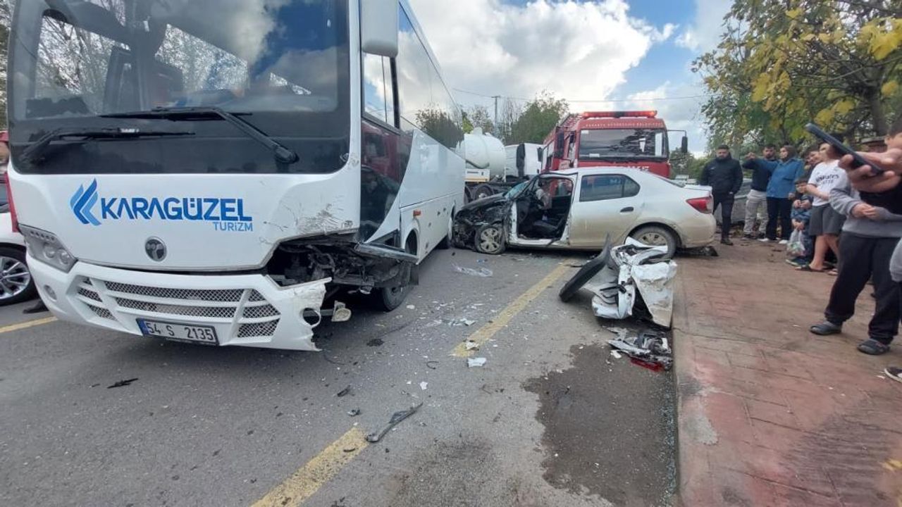Gelen bilgiye göre, Ada Caddesi Vakıf Mahallesi mevkiinde, U.K. idaresindeki 54 S*** plakalı servis minibüsü, önünde yavaşlayan 54 AFG *** plakalı otomobile arkadan çarparak manevra yaptı. Manevra yaptığı esnada karşı yönden gelen U.S.G idaresindeki 54 BZ *** plakalı otomobille de kafa kafaya çarpıştı.