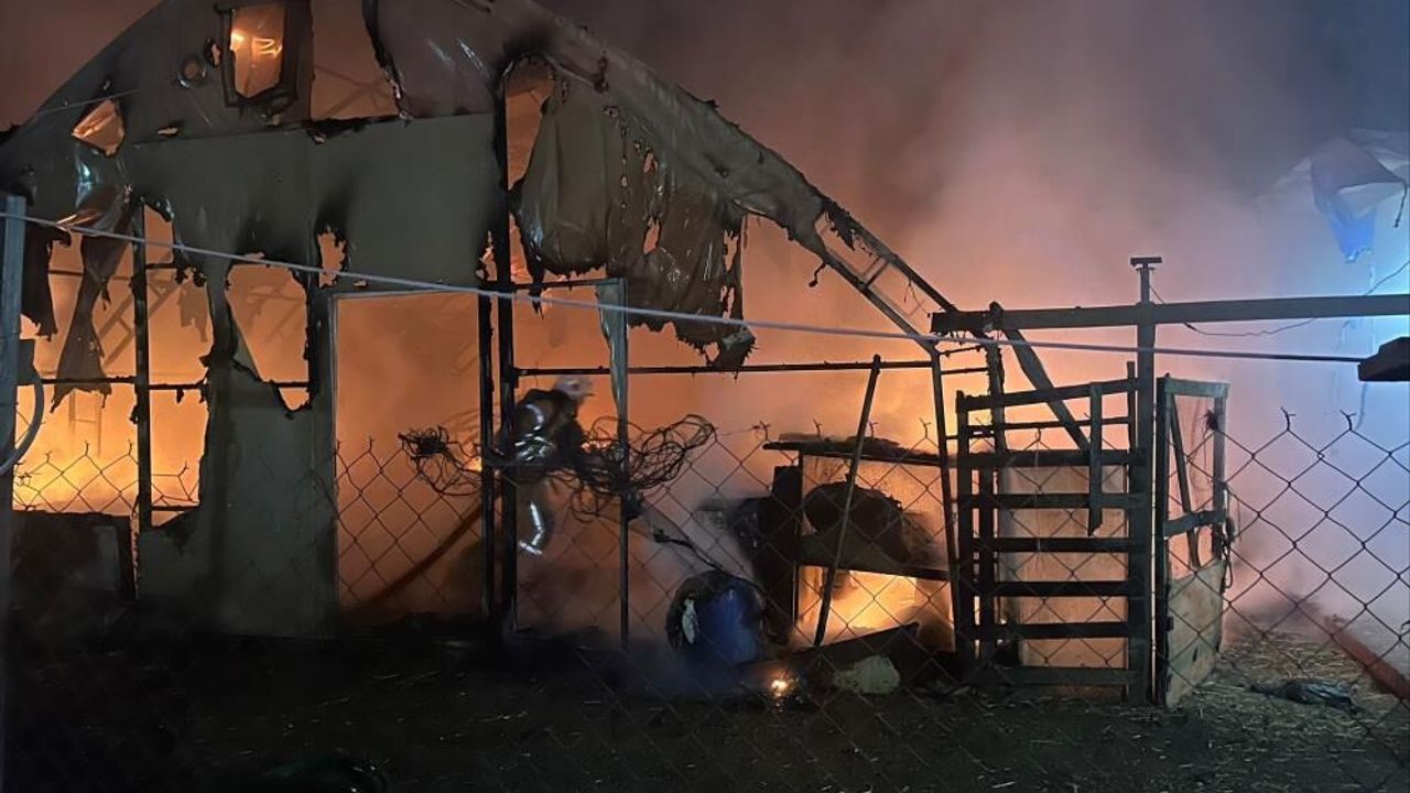 Bursa'nın İnegöl ilçesinde bulunan bir çiftlikte çıkan yangında 250 tavuk, 150 civciv ve 180 kaz telef oldu.