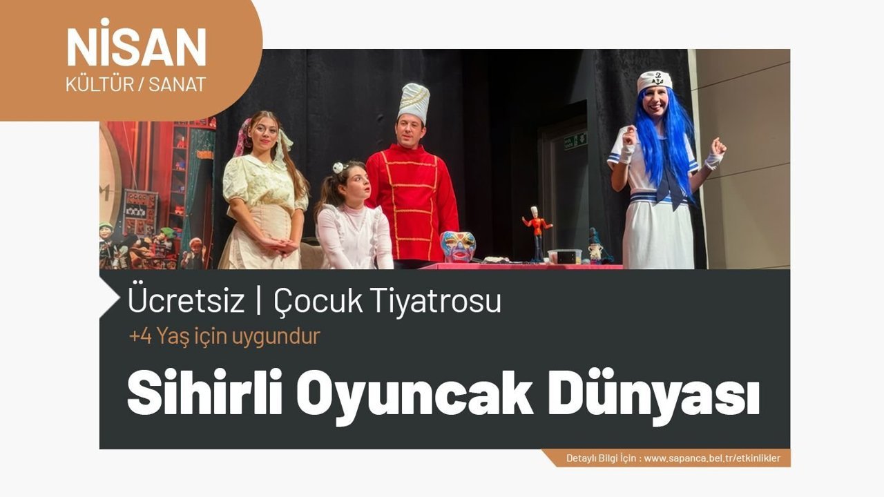 Sapanca Belediyesi, çocuklara yönelik kültürel etkinliklerine bir yenisini daha ekliyor. “Sihirli Oyuncak Dünyası” adlı ücretsiz çocuk tiyatrosu, 18 Nisan Cumartesi günü minik izleyicilerle buluşacak.