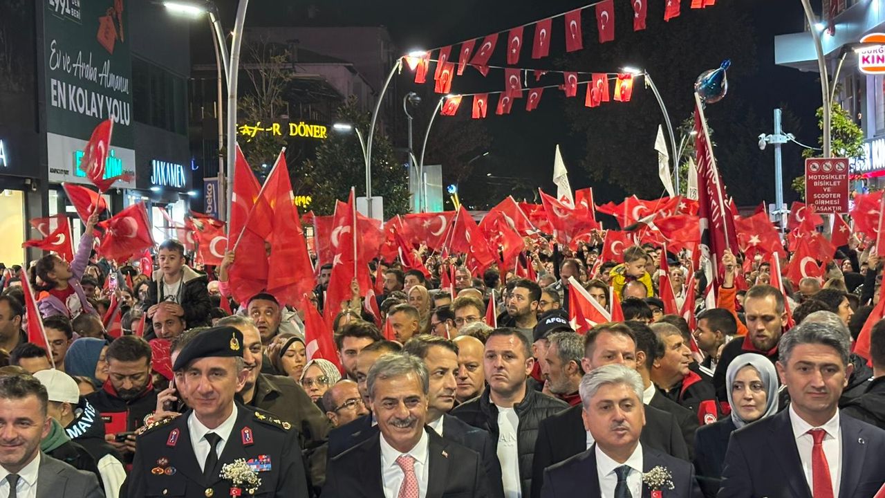Sakarya'da her yıl büyük bir ilgiyle karşılanan Fener Alayı, bu yıl da Adapazarı ilçesinin kalbi Çark Caddesi'nde başladı. Ellerinde fenerlerle yürüyüşe katılan binlerce vatandaş, bando takımının çaldığı marşlar eşliğinde coşkulu adımlarla ilerledi. Yürüyüşün sona ereceği nokta ise Demokrasi Meydanı oldu.