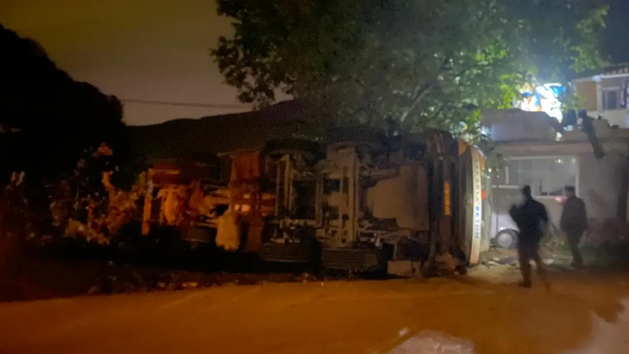 Akyazı ilçesi Yongalık Mahallesi'nde yaşanan kazada, virajı alamayan bir beton mikseri devrilerek sürüklendi.