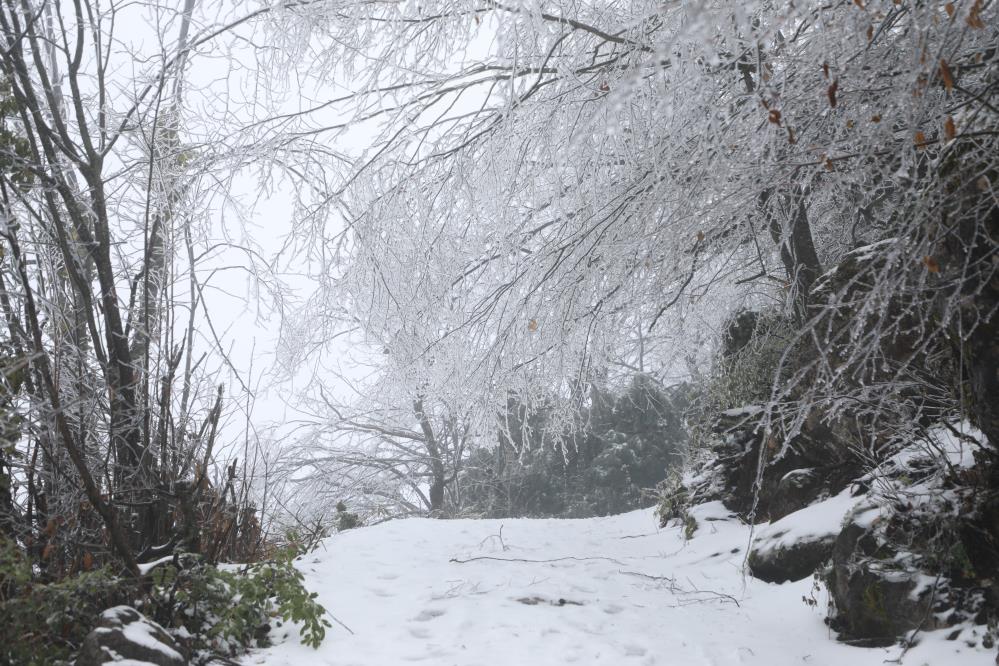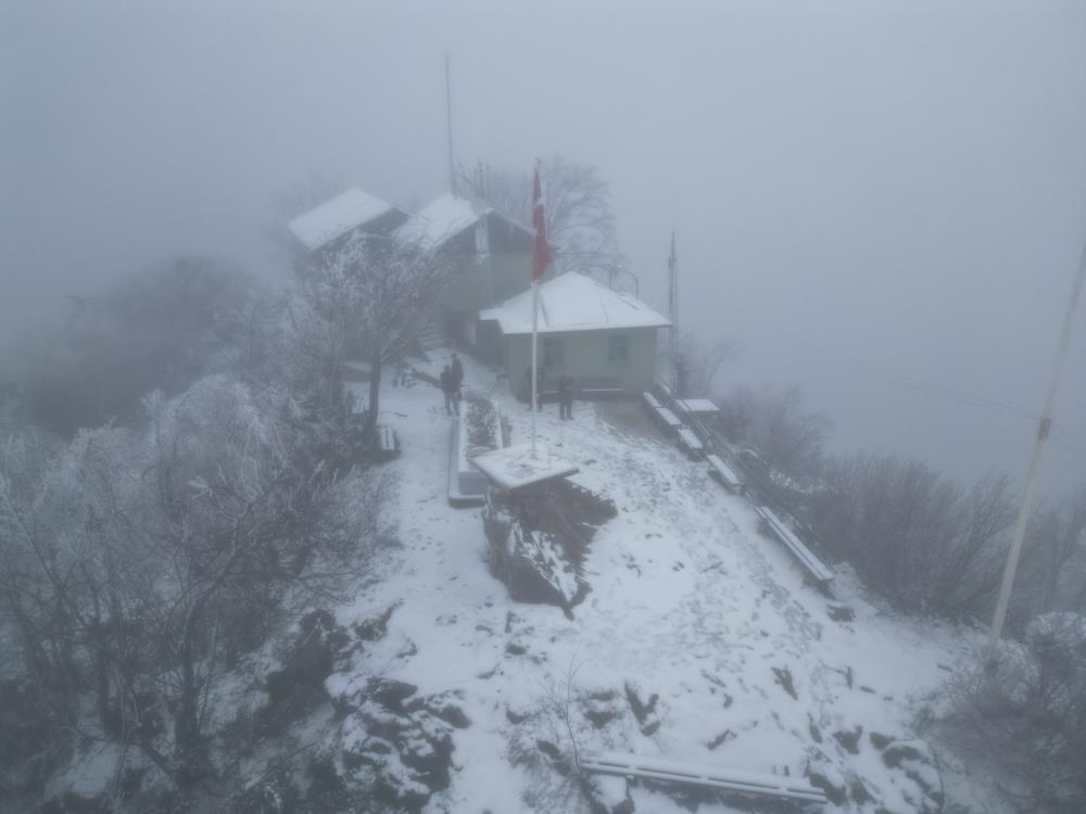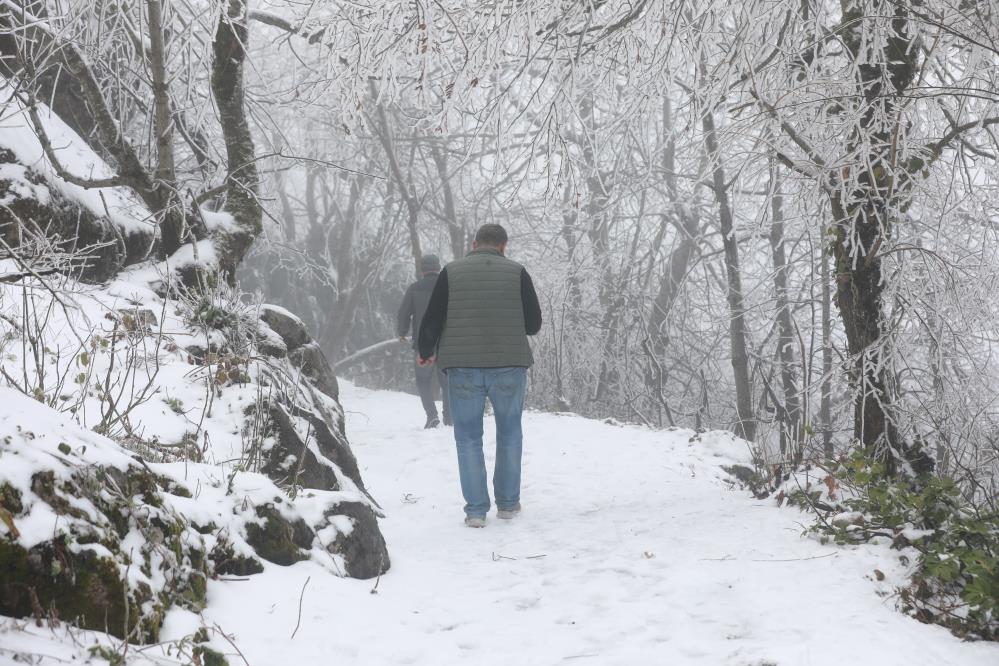 Kar yağışının yanı sıra bölgede etkili olan yoğun sis, güzel görüntüler oluşturdu.