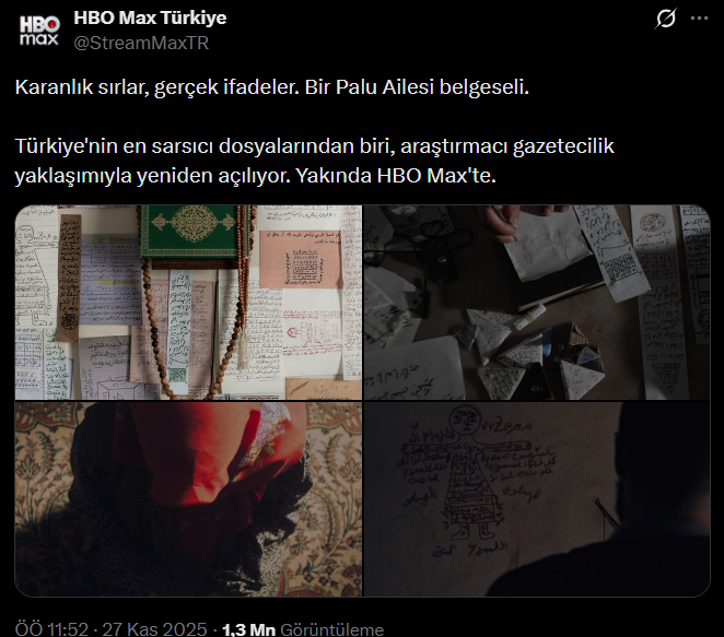 HBO, Palu Ailesi olayını “karanlık sırlar” ve “gerçek ifadeler” vurgusuyla yeniden gündeme taşıdı. Yapımın yakında HBO Max’te yayınlanacağı belirtilirken, belgeselde özel röportajlar, arşiv görüntüleri, uzman görüşleri ve derinlemesine bir araştırmanın yer alacağı ifade edildi.