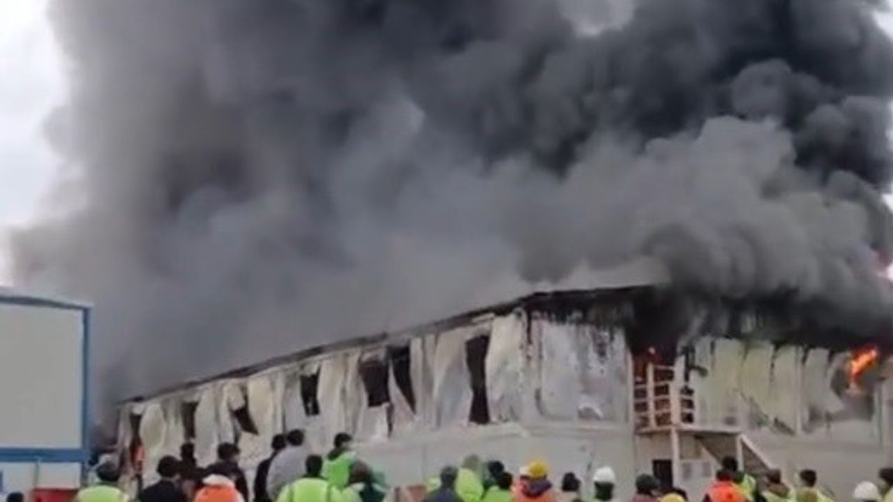 Olayın ardından ortaya çıkan yeni görüntülerde, konteynerlerin adeta bir alev topuna döndüğü, dumanların gökyüzünü kaplandığı ve işçilerin uyudukları yapının kül olmasına şahit olduğu anlar yer aldı.