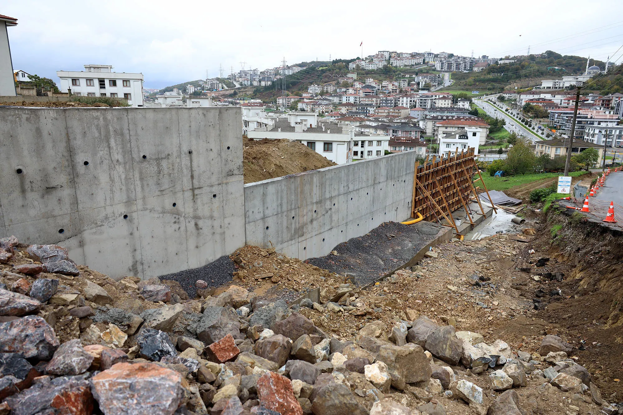 Trafik yükünü kaldırmayan sokak geniş bir geçiş hattı olacak ve 4 metre ile 8 metre uzunluğundaki istinat duvarlarıyla korunacak.