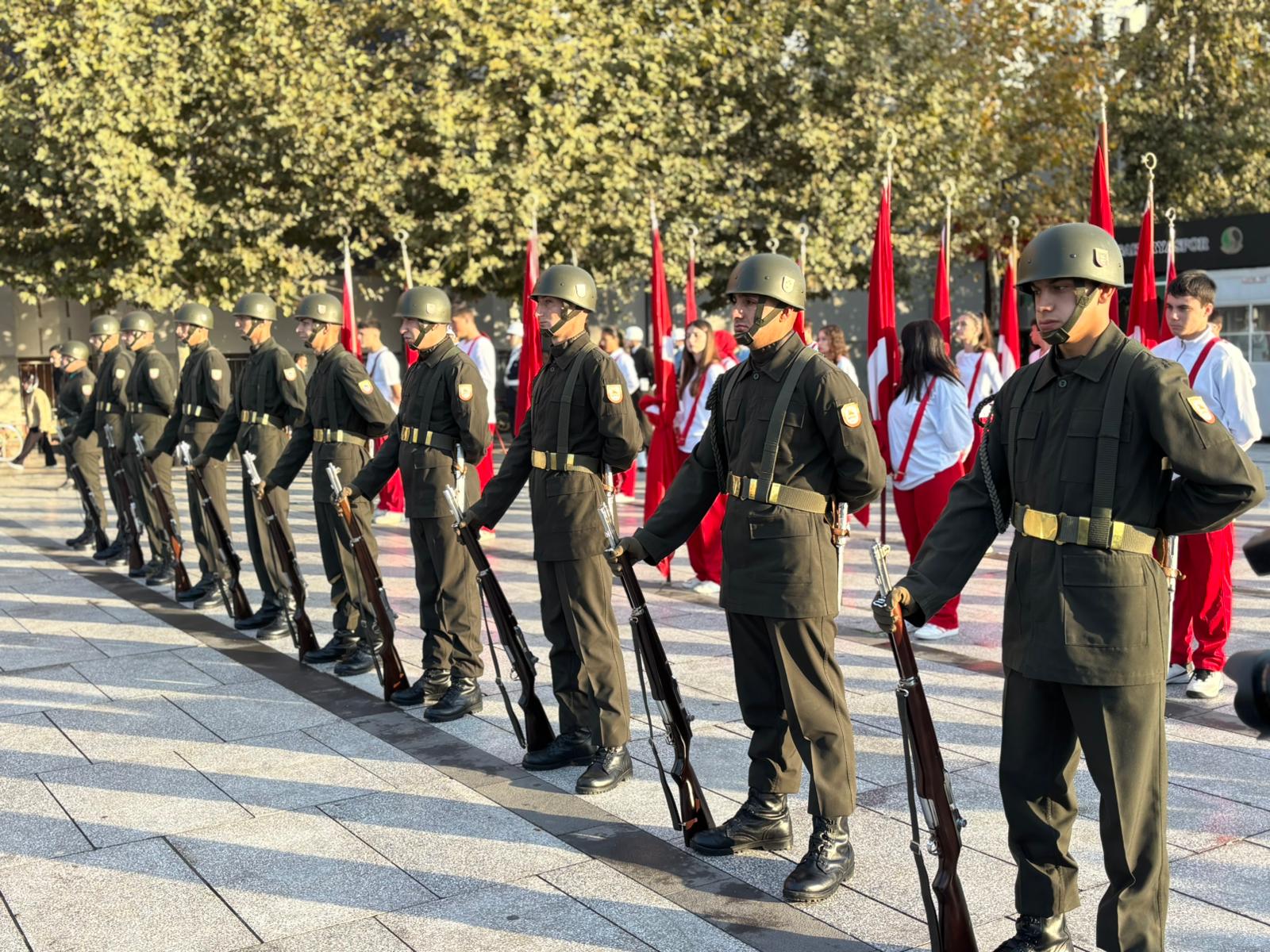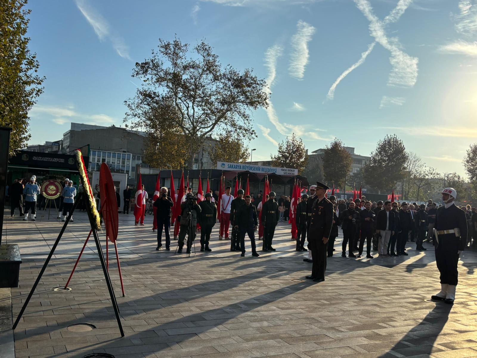 Demokrasi Meydanı’nda gerçekleşen törende Garnizon Komutanı Ramazan Sedat Baş, Sakarya Valisi Rahmi Doğan, Sakarya Büyükşehir Belediye Başkanı Yusuf Alemdar ve Atatürk büstüne çelenk sundu.
