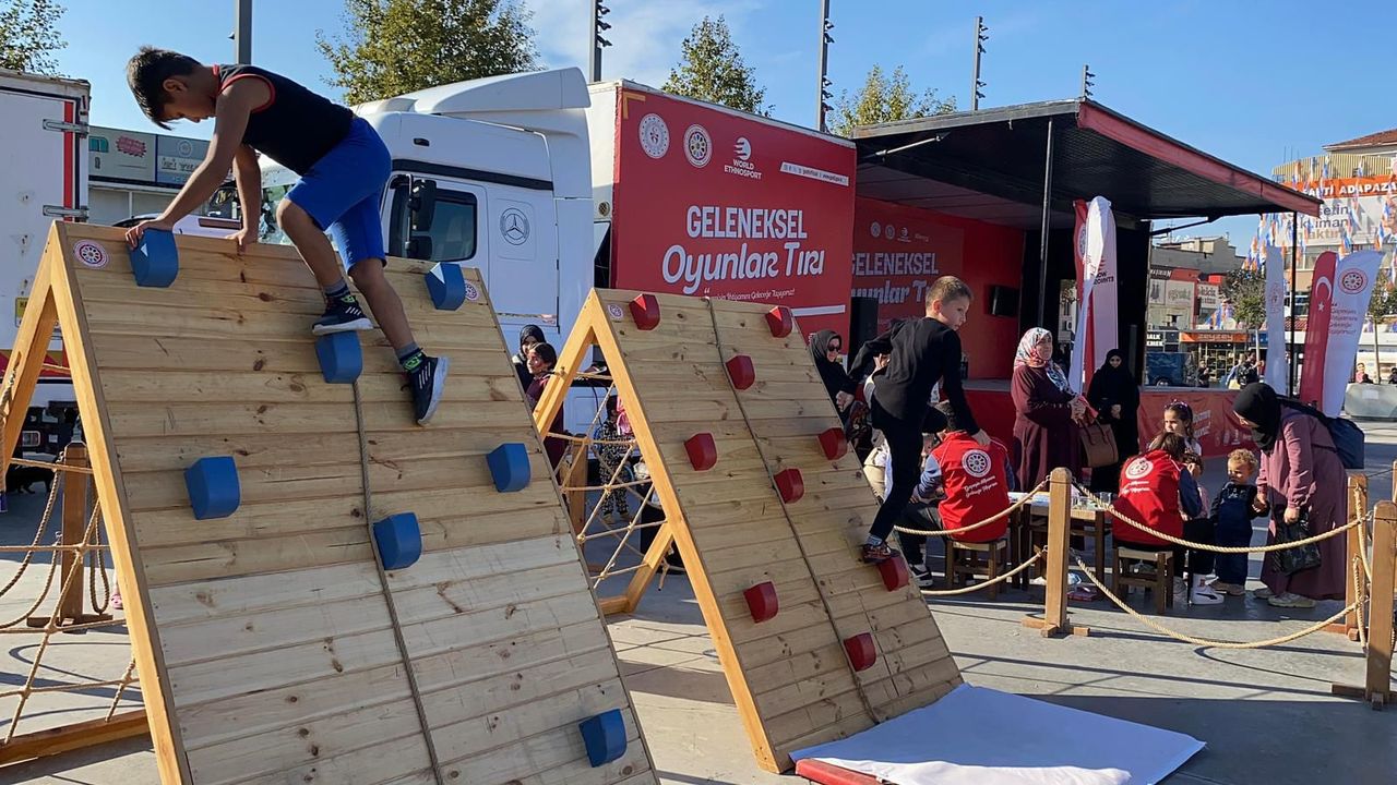 Türkiye Geleneksel Spor Dalları Federasyonu’nun “Geleneksel Oyunlar Tırı” Sakarya Demokrasi Meydanı’nda çocuklar ve aileleriyle buluştu.