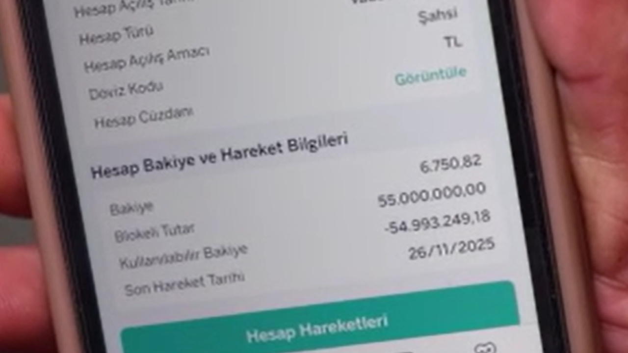 Kırıkkale'nin Keskin ilçesinde yaşayan 34 yaşındaki Adem Gürler, mobil bankacılık uygulamasına girdiğinde bakiyesinde 55 milyon lira olduğunu görünce adeta dili tutuldu. Arkadaşının gönderdiği 6 bin 750 lirayı görmek için hesaba giriş yaptığını belirten Gürler, ekranda milyonlarca lira ile karşılaştığını söyledi. Hesabının bloke edildiğini anlatan Gürler, yetkililerden sürecin açıklığa kavuşturulmasını istedi.