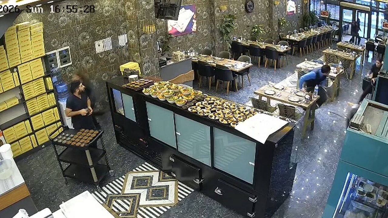 Asma tavanın çökme anı ise iş yerinin güvenlik kamerası tarafından saniye saniye kaydedildi.