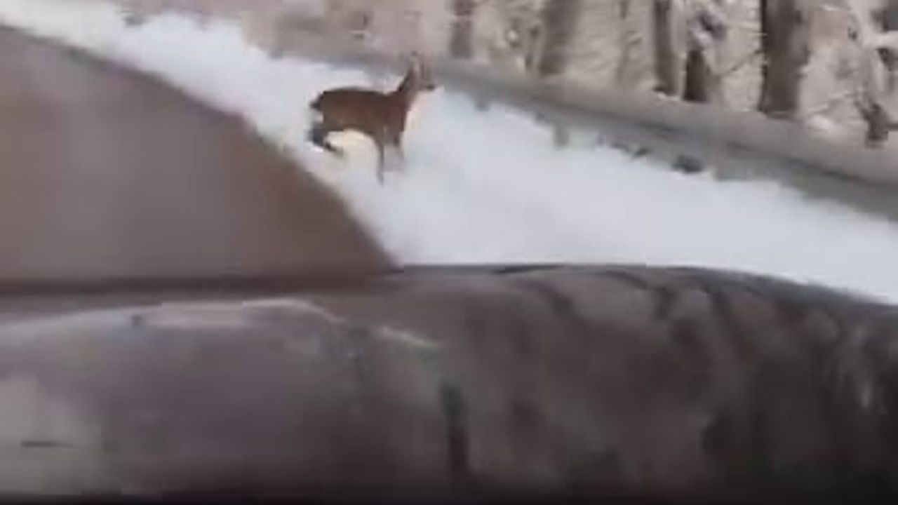 Sakarya’nın yüksek kesimlerde etkili olan kar yağışı, hayatı olumsuz etkilese de kartpostallık görüntüleri ve doğanın neşesini de beraberinde getirdi. Kar keyfi yapmak için Akyazı ilçesi Güzlek Mahallesi mevkiinde giden bir aile, karlı yola inen karaca ile karşılaştı. Bir süre araç içindeki aileye bakan karaca, daha sonrasında ormanlık alana doğru koşmaya başladı. O anlar ise aile tarafından saniye saniye görüntülendi.