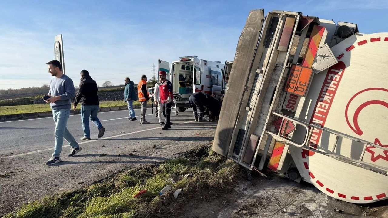 Sakarya'nın Adapazarı ilçesinde kontrolden çıkan tankerin devrilmesi sonucu meydana gelen kazada sürücü yaralandı.