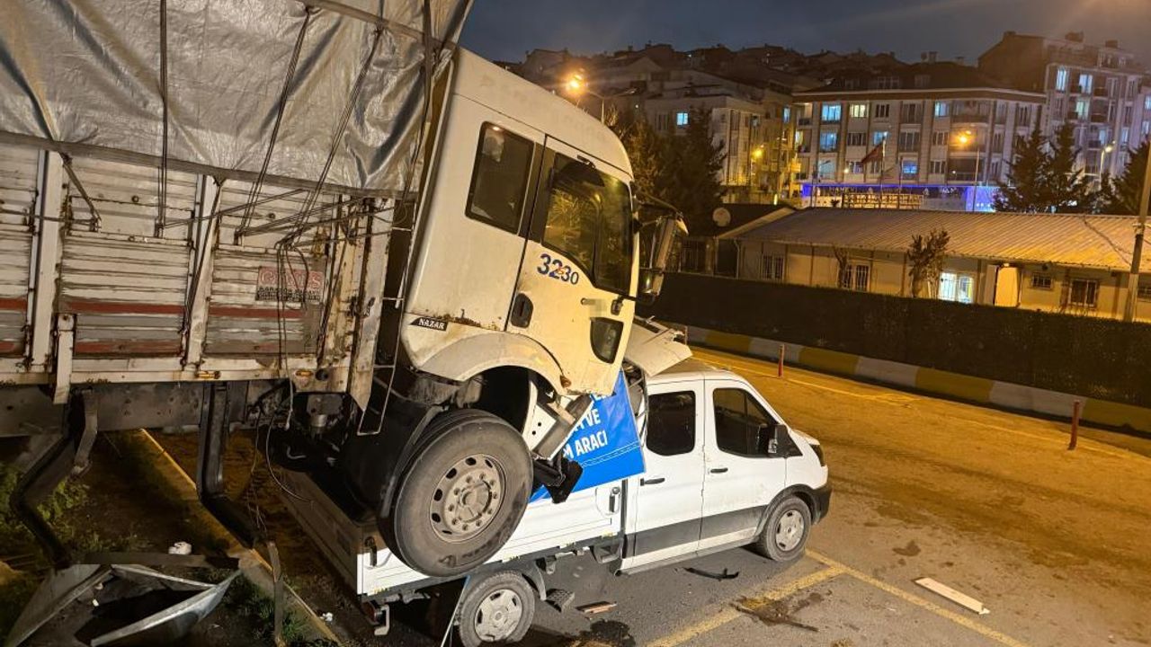 Esenyurt'ta park halindeki bir kamyon kendi kendine hareket ederek, park halinde bulunan başka bir kamyonetin üzerine düştü. Kaza anı güvenlik kameralarına yansıdı.