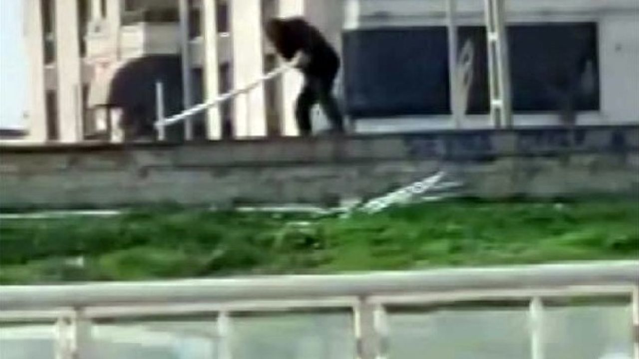 Edinilen bilgiye göre, kimliği henüz belirlenemeyen bir kişi, Prof. Dr. Sabahattin Zaim Bulvarı kenarındaki parkta yer alan yapının korkuluklarını yerinden sökerek kenara koydu. Yoldan geçenler adamı hayretle izledi.