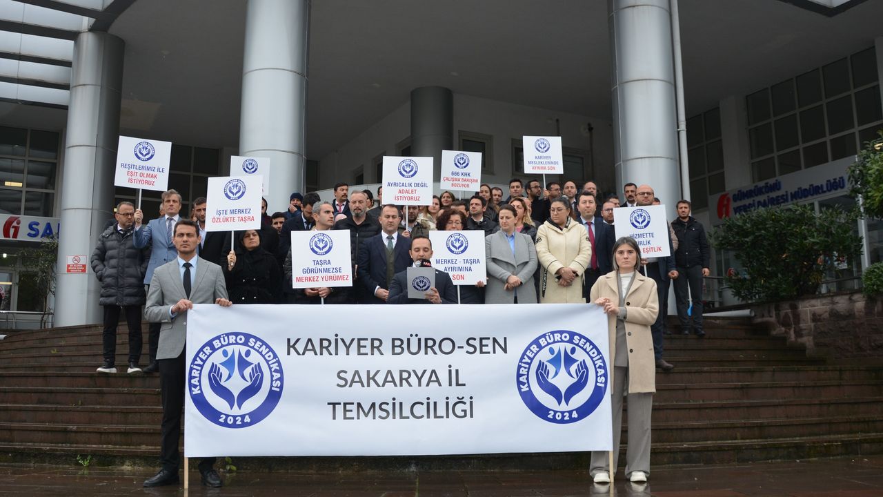 Kariyer Büro Sen Sakarya İl Temsilcisi Sezer Küçük, Sakarya Defterdarlığı önünde yaptığı basın açıklamasında, 666 sayılı Kanun Hükmünde Kararname (KHK) sonrasında taşra kariyer meslek mensuplarının ciddi hak kayıpları yaşadığını dile getirdi. Küçük, bu mağduriyetlerin giderilmesi için söz konusu mesleklerin 375 sayılı KHK’nin 3 sayılı cetveline dahil edilmesi gerektiğini vurguladı.