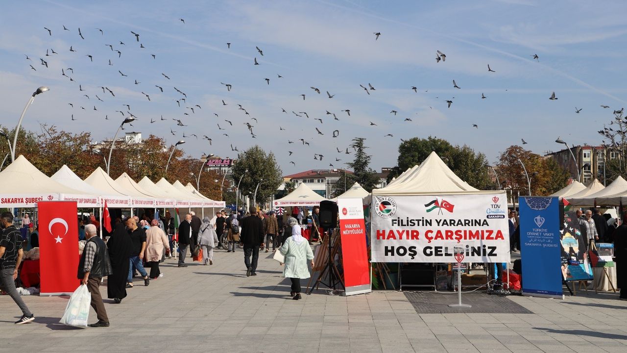 Türkiye Diyanet Vakfı (TDV) Sakarya Şubesi ve TDV Sakarya Kadın Kolları öncülüğünde, Filistin’e Destek Platformu gönüllüleriyle birlikte Gar Meydanı’nda ‘Filistin Yararına Hayır Çarşısı’ kuruldu. Kur’an-ı Kerim tilavetiyle başlayan etkinlikte, çeşitli el emeği ürünler ve hediyelik eşyaların yer aldığı stantlarda satışa sunulan ürünlerden elde edilecek tüm gelirin, Filistin’deki ihtiyaç sahiplerine ulaştırılacağı belirtildi. Vatandaşların yoğun ilgi gösterdiği hayır çarşısında, birlik ve dayanışma duyguları ön plana çıktı. Programın açılış konuşmasını yapan Sakarya İl Müftüsü Mehmet Aşık, Filistin’de yaşanan zulme dikkat çekerek, "Zulüm altındaki kardeşlerimizi unutmadık. Dualarımızla, maddi ve manevi desteklerimizle yanlarında olmaya devam ediyoruz" derken Sakarya Vali Yardımcısı Asalet Karabulut, Gazze’de yaşanan insanlık dramına dikkat çekerek, "Gazze’de sivil halk hedef alınıyor, kadınlar ve çocuklar katlediliyor. Bu bir insanlık suçudur. Bu zulme sessiz kalmamak hepimizin ortak sorumluluğudur" dedi.