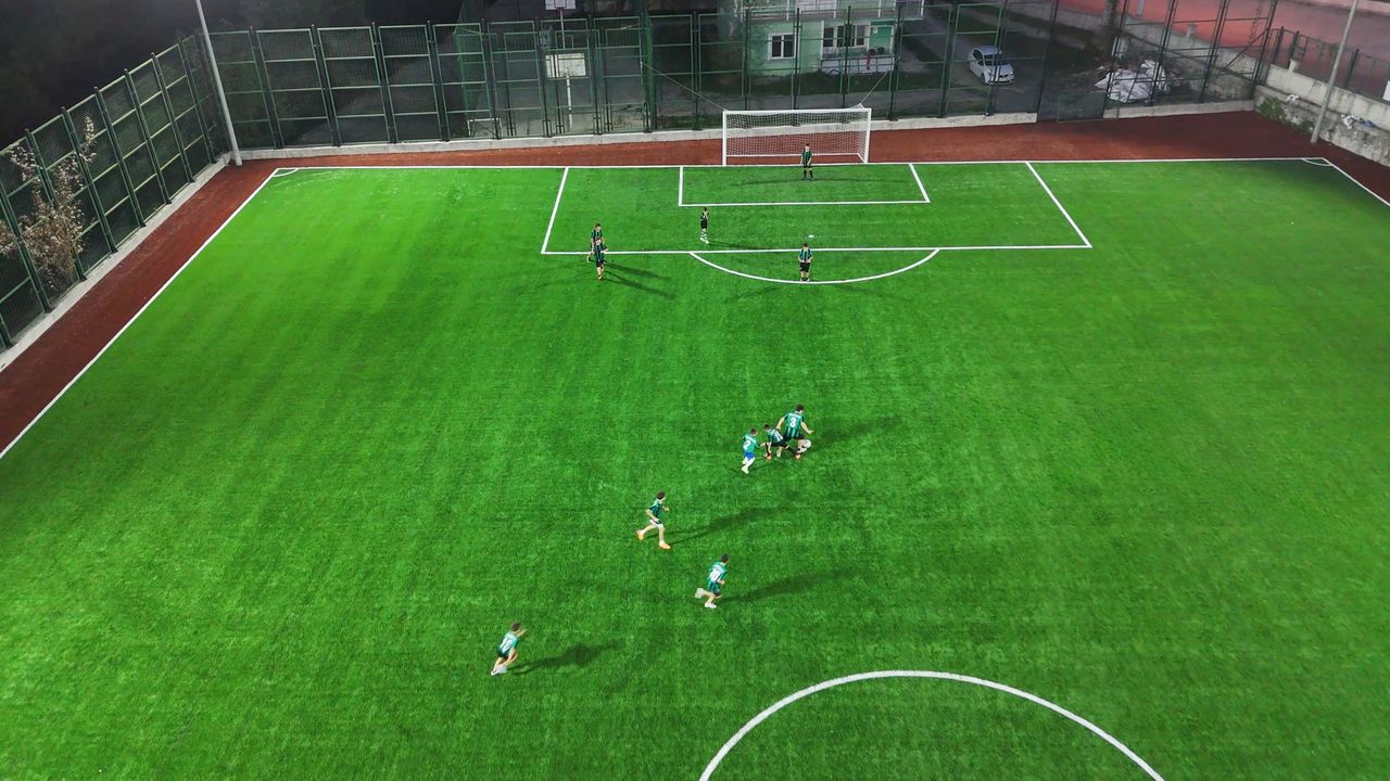 Sentetik çim serimi tamamlanan sahada mahallenin gençleri geç saate kadar futbol oynuyor, aktivite yapıyor.