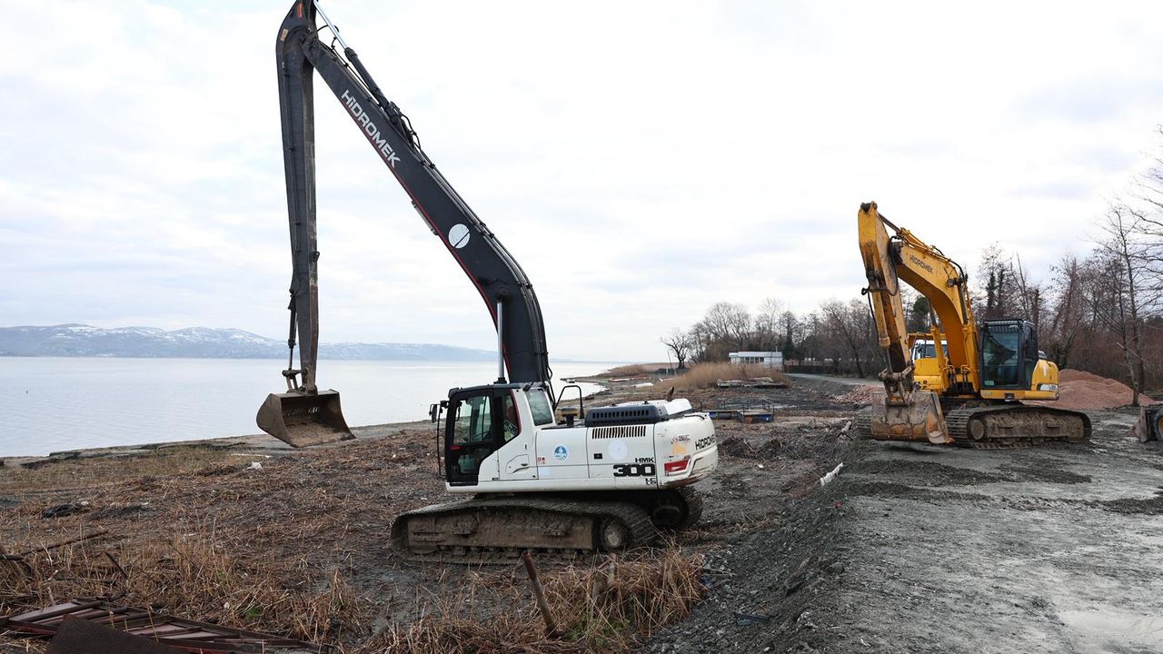 Sapanca Gölü çevresinde kamuya ait alanları işgal eden kaçak iskelelerin kaldırılması için iş makinaları çalıştı, 89 kaçak iskelenin temizlenmesi için çalışmaları resmen başladı.