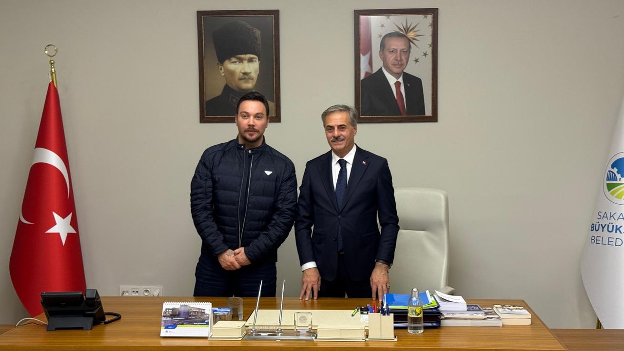 Sakarya Büyükşehir Belediye Başkanı Yusuf Alemdar, makamında ünlü besteci ve müzisyen Sinan Akçıl'ı ağırladı.