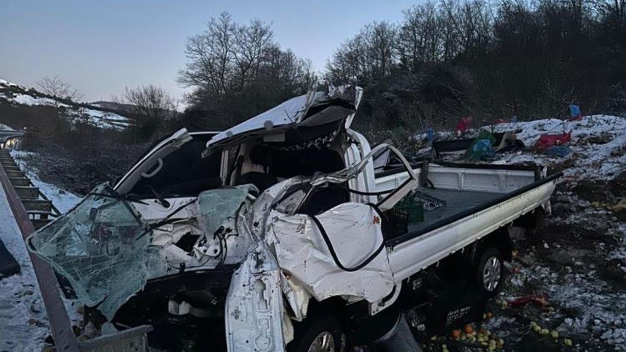 Sakarya'nın Kaynarca ilçesinde kontrolden çıkan kamyonetin takla atıp yoldan çıkması neticesinde kamyonette bulunan meyve ve sebzeler yola saçılırken araç kullanılmaz hale geldi. Kazada, baba ve oğlu yaralandı.