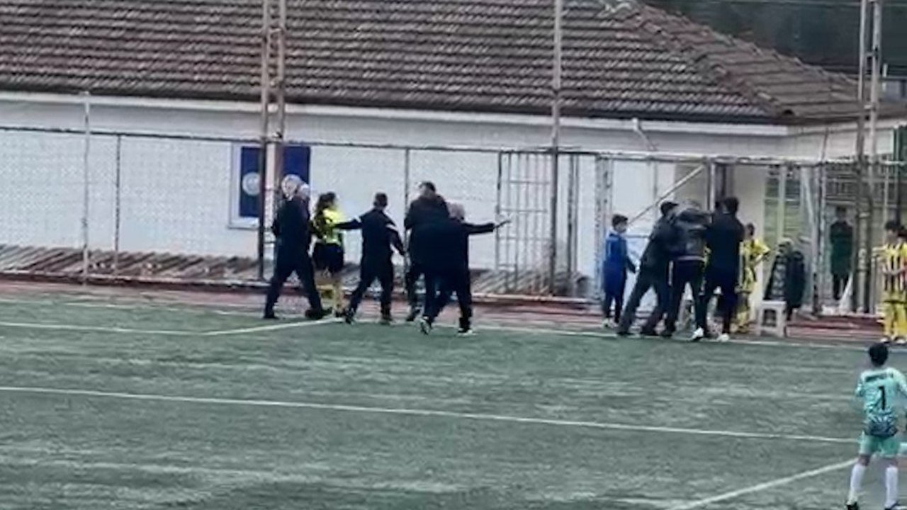 Kocaeli'nin Derince ilçesinde oynanan U11 Ligi müsabakasının ardından sahaya giren bir kişi, kadın hakeme saldırı girişiminde bulundu. O anlar tribündeki bir vatandaşın cep telefonu kamerasıyla kaydedildi.