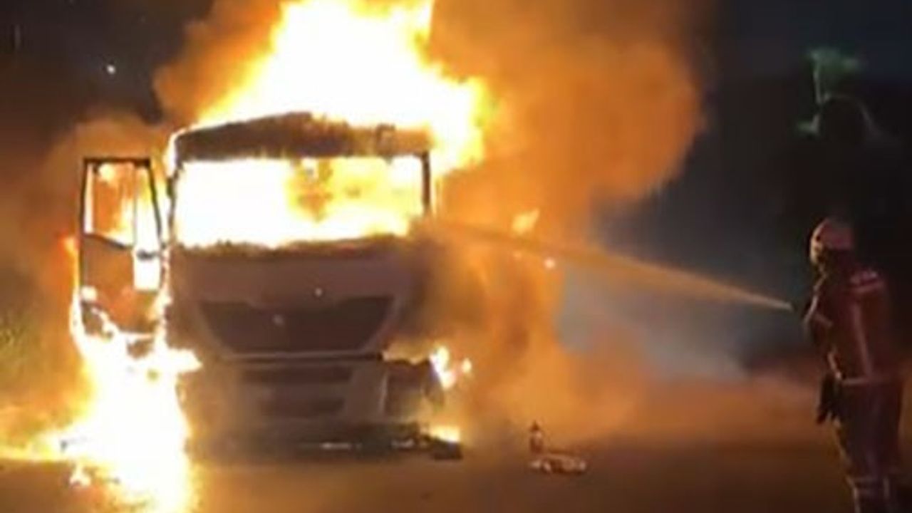 Kömür yüklü tır alev alev yandı