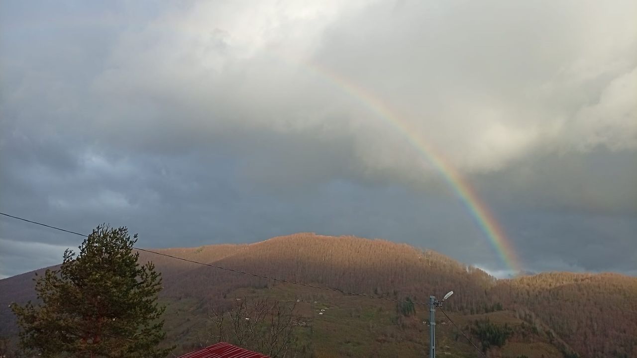 İlçenin bin rakımlı yayla ve tepe kesimlerinde etkili olan sağanağın ardından güneşin yüzünü göstermesiyle gökyüzünde renk cümbüşü yaşandı. Bulutların arasından süzülen güneş ışıkları ve bölgedeki sis tabakasıyla birleşen gökkuşağı, yeşil doğanın üzerinde güzel görüntüler oluşturdu.